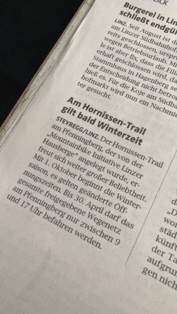 Einerseits natürlich zur Trailpartie Linz/Steyregg, andererseits gibts im OÖN-Artikel auch Infos zu den aktuellen Entwicklungen. ![]()